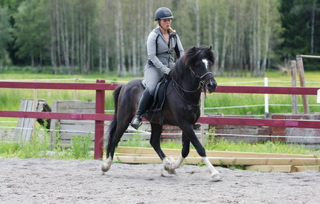 Ari rörde sig till en början mest i skritt, tölt och höger galopp, men ju bättre balansen blev och ju mer han vande sig vid att bära ryttare desto mer travade han.