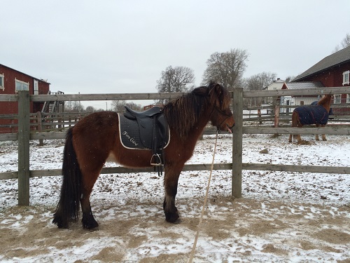 Har nu precis haft sadel på sig, vilket funkade med honom stående lös i corallen (något som hade varit helt otänkbart bara 3 gånger tidigare).