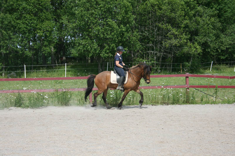Brandi har tagit tid. Började lite smått med tölten sommaren 2013, insåg att han inte var stark nog och jobbade med överlinjen och lät tölten dyka upp lite då och då (i farten, i nerförslut) i neutral form. Skrittade fram mot grundtölt.