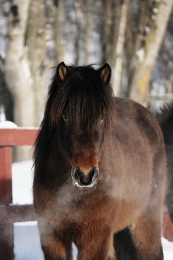 Vìsir är en fyrgångsvalack (då han var klapphingst kastrerades han) som Britta, som även äger Váli, köpte hösten 2011. Han har en stamtavla att avundas och Mökkur-avkomornas typiska milda sinneslag.